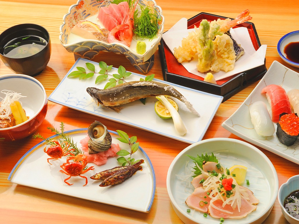 割烹料理から海鮮を扱う料理まで、幅広い種類の和食にもご対応可能です。フォーマルなシチュエーションから、結婚式などのおめでたい席にも人気の高いコースです。